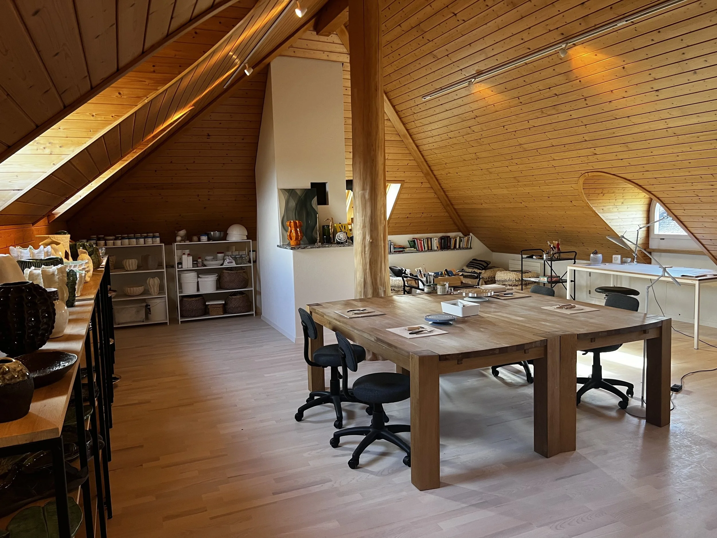 Meine Arbeit entsteht an zwei besonderen Orten, die beide Teil von mir sind: In Küsnacht, wo ich mit meiner Familie lebe, arbeite ich im ausgebauten Dachstock einer Scheune über einem alten Bauernhaus. Die Nähe zur Natur, zu den Tieren und zu meinen Wurzeln schenkt mir Kraft und Erdung. Hier entstehen viele meiner Ideen – in Ruhe und im Einklang mit dem, was mich trägt.