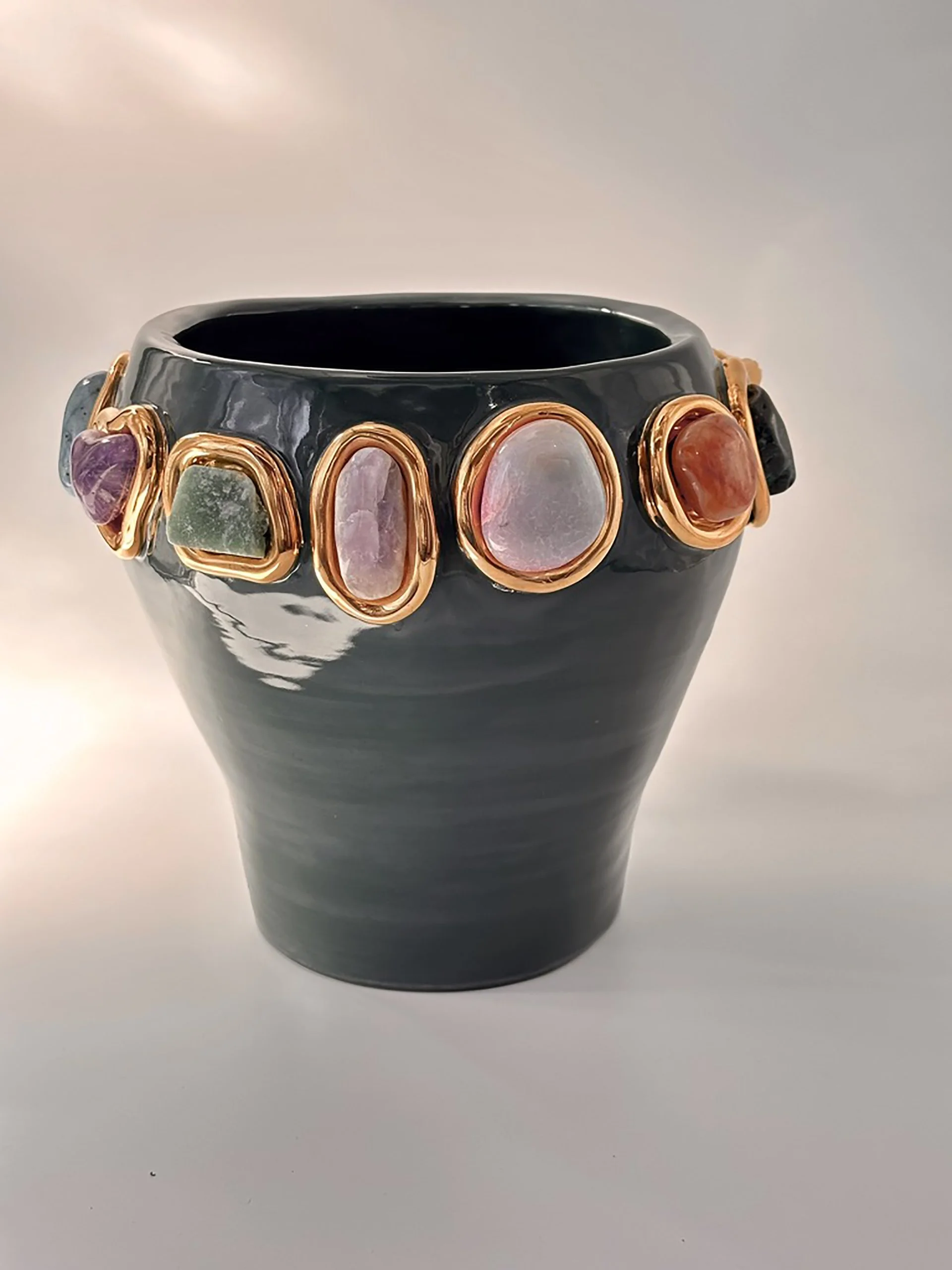 #13 - blaugrün/gold mit Halbedelsteinen - H 23 cm, Ø 23 cm