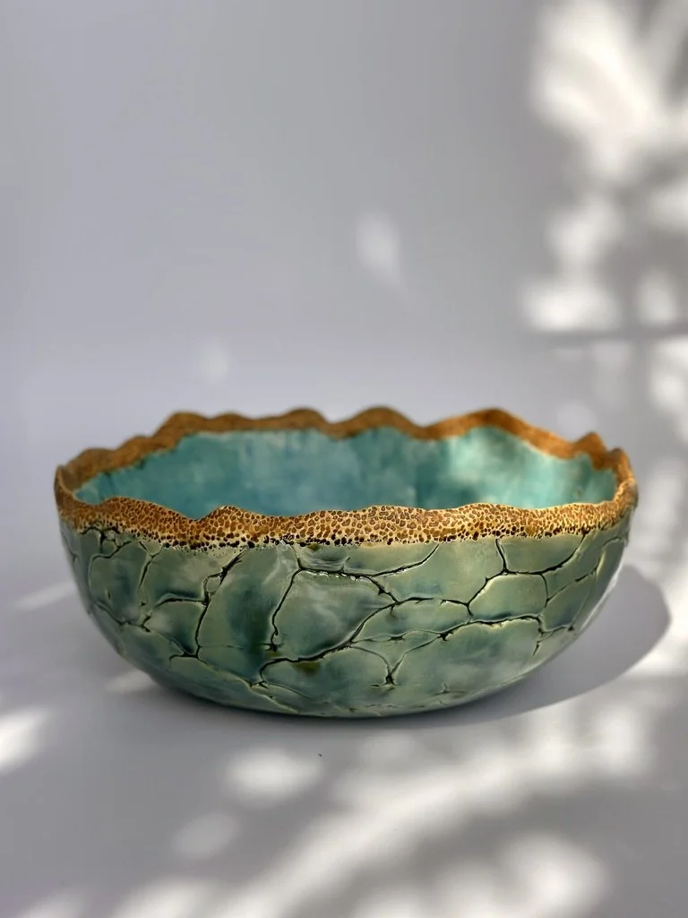 R: #11 - blaugrün, mit Rand orange - H 10 cm, Ø 30 cm