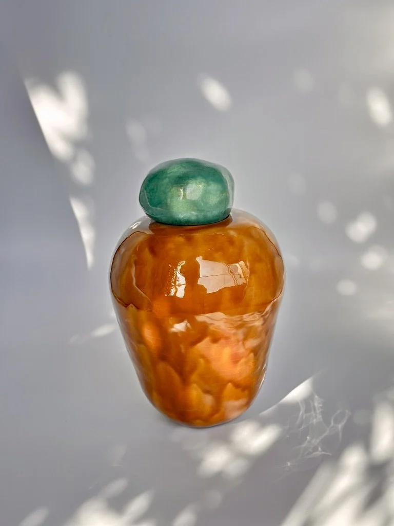#14 - orange/grün - H 26 cm (mit Deckel H 30 cm), Ø 20 cm
